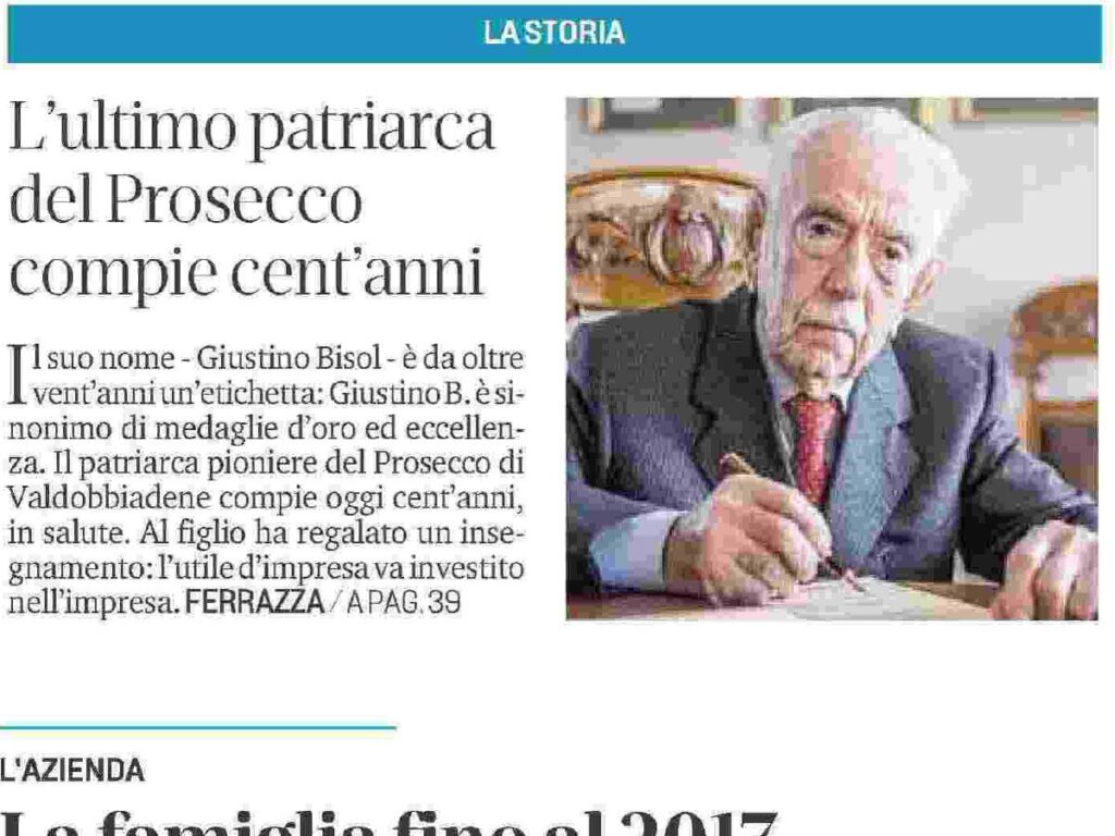 L’ultimo patriarca del Prosecco compie cent’anni